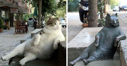 紅遍全球網路「淡定肥貓大叔」不幸過世,設立「等比大小超逼真銅像」紀念他連其他貓咪都來拜碼頭!