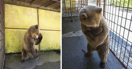 這隻棕熊被遊客目擊突然開始「站起來發狠狂咬自己」,當大家得知背後原因都忍不住當場淚崩…