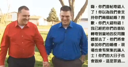 這對即將結婚同志情侶結婚前收到一封「充滿仇恨的反同警告回函」,但沒想到這卻變成了完美婚禮的超棒燃料!