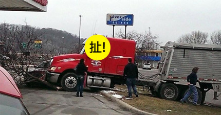 大卡車突然失控衝撞對向加油站嚇壞眾人,但一看到肇事駕駛後可愛到根本就無法生氣!