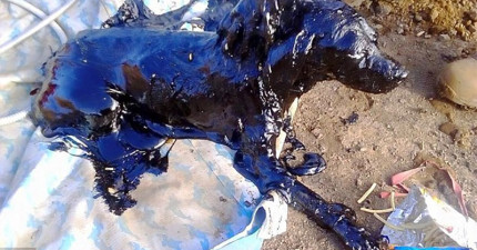 他們開車開到一半發現路邊有一尊狗石像在動,沒想到一把瀝青清掉後…