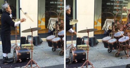 街頭藝人用3根鼓棒打鼓 丟出去「再彈回來」讓人狂重播