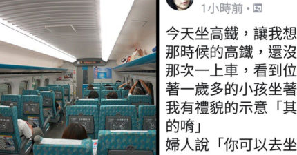 「我還有1個小孩要坐!」單身女搭高鐵遭婦人逼讓位,「苦主翻身2孩子媽」打臉:想要位子就自己花錢買!
