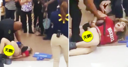 賣場中兩女小褲褲被警察弄掉壓在地上,還有女生直接把便便塗在警察臉上 (影片)