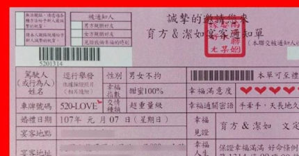 沒違規卻收到「紅單」?警察情侶寄「特製罰單喜帖」…「幸福人生條款」超可愛