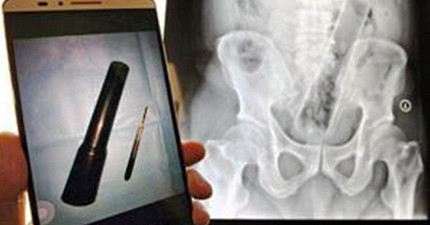 这名男子唱卡拉OK唱到麦克风跑到体内了…