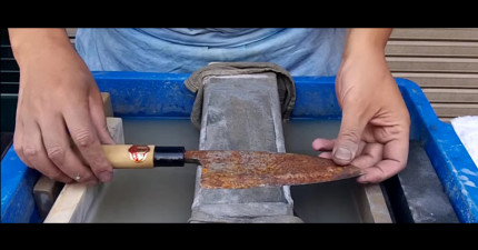 看到這把刀鏽成這樣我連碰都不想碰,但看到他在幾分鐘內把它變得像全新我佩服到不行!