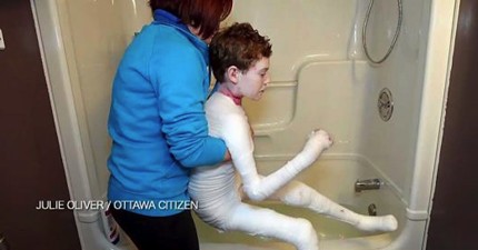 這名14歲男孩的媽媽每兩天就把他像木乃伊一樣包得緊緊的,每次洗澡都需要經歷折磨3小時!