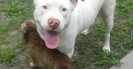 當找到這隻比特犬的時候,她的嘴巴裡咬著一隻吉娃娃。他們之間的故事好感人!
