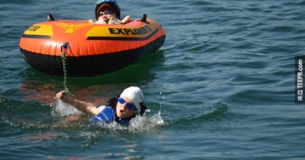 這個8歲的小男生基本上背著他的弟弟完成鐵人三項。聽原因之前請先準備一包衛生紙!