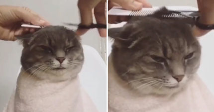 貓大哥綁圍兜兜剪頭毛!看到失敗成品秒變「流氓狠臉」:你是不是想die?