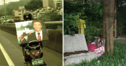 公園運動驚見「阿婆遺照」 兒子貼紅紙條:讓民眾怕就好