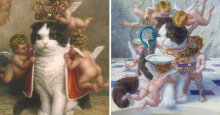 藝術家把「貓咪放進油畫」美到想改寫歷史 貓皇連天使都統治了