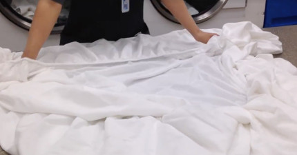我們錯誤的折床罩方法速度又慢而且會弄出超多皺摺,這位飯店人員親自示範的超省時完美方法會讓你一輩子受用!