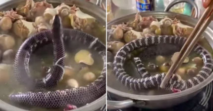 影/食客把小蛇「丟下鍋活煮」 還用「筷子強壓」網罵成一片!