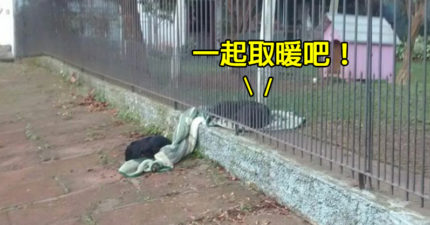 捨不得浪浪睡街頭!牠慷慨「把毯子拖到屋外」跟同伴分享