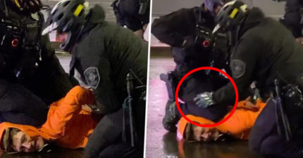 影/警察下意識「又跪脖子」示威者暴怒 同伴趕緊「拍膝蓋」滅火