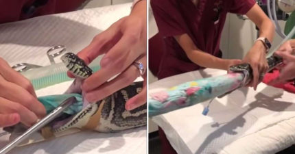 貪吃蛇把整條毛巾吞下肚 獸醫拉出「一個成人尺寸」全場嚇壞!