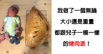 吃貨爸用「巨大烤肉派」迎接兒子 「19小時後」他超後悔生!
