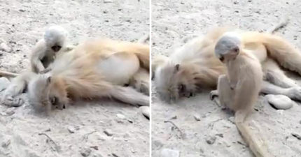 母猴觸電過世!猴寶寶「守在身邊」不肯離開 最後「對媽媽貼臉道別」所有人淚崩