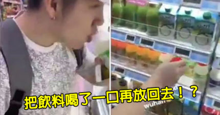 白目男拍教學影片「如何散佈武肺」 偷喝飲料「再放回原位」超惡劣!