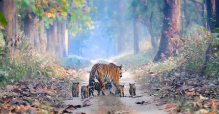 虎媽帶「5隻寶寶穿越森林」照片爆紅 專家大讚:印度保育很成功!