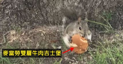 胖鼠大嗑「麥當勞吉士堡」畫面超衝擊 網驚呼:松鼠不是吃素?