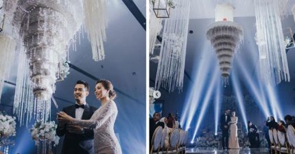 新婚夫妻訂製「水晶吊燈蛋糕」 從天而降秒變婚禮主角