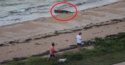 海灘遛狗驚見「鱷魚曬太陽」 當地人超淡定:跑來這很正常啦~