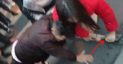 夫妻當街扭打!短裙鉛筆腿妹衝出「赤手奪刀」壓制 身分曝光被大讚