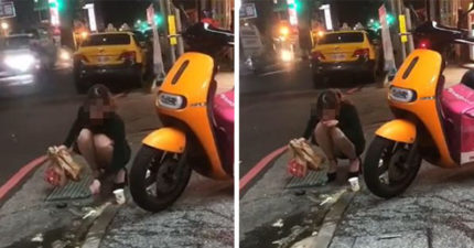 長腿妹路邊翻倒麥當勞 蹲下「一手抓一口猛舔」嚇壞網