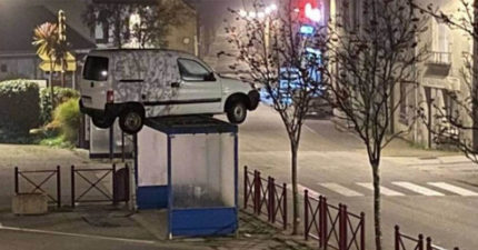 公車亭上「飛來一台小貨車」 警察揭真相傻眼了