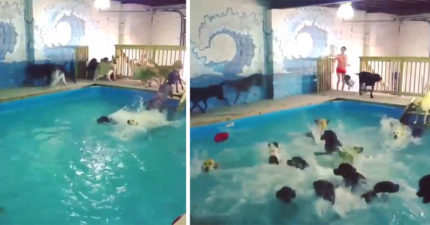 放風啦!汪星人興奮跳水秒變「狗狗大浴場」:你們不要再擠了~