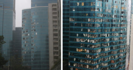 颶風山竹/香港辨公大樓玻璃被吹爆!「滿天文件」被吹到空中:還以為是電影
