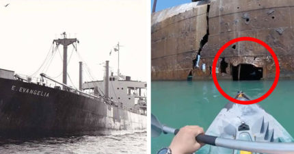 他大膽划進「二戰擱淺船的小洞」 看到的東西讓他不想出來了