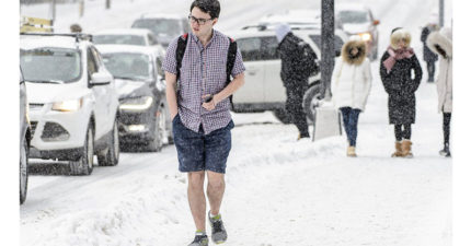 男學生-8°C大雪中「短袖短褲」淡定漫步紅遍全球,全網震驚:一定是處男