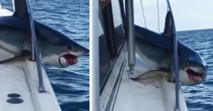 真實版《大白鯊》!鯊魚突然跳到漁船上,卡在欄杆內「嘴裡都是鮮血」!(影片)