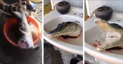 鱷魚寶寶被肢解,頭放在水槽裡「不斷想掙脫」讓人看得痛心…(非趣味影片)