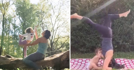超狂媽媽「倒立瑜珈邊餵母奶」,小孩還「柯南上身」超淡定享用大餐萌死網友!