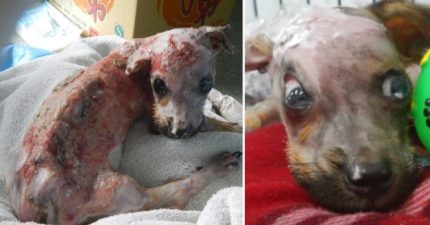 主人因為「手機被咬」把6個月大小狗用熱水燙傷從4樓丟出去,現在他變成這個模樣了。