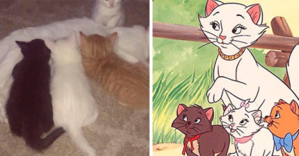 《貓兒歷險記》真的存在!白貓媽媽生下白、橘、黑小貓 「長大後模樣」根本是真人版了