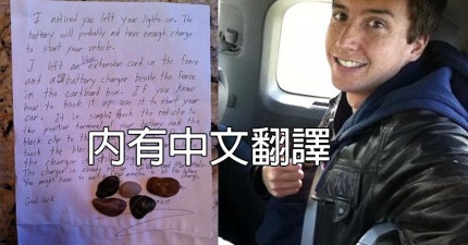 這名學生停車忘了關大燈,隔天發現車上這張讓他感動到說不出話的紙條。