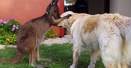 這隻袋鼠跟狗狗一起生活竟開始確信自己也是一隻狗,連行為也一樣!