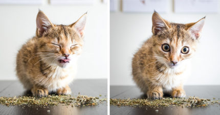 18張「吸草吸到ㄎㄧㄤ掉」的爽貓醜照 高冷形象崩壞:再給偶一點就好~