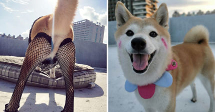 她幫柴犬穿上「性感網襪」比網美還適合 神捕捉「魅惑回眸」大長腿超逆天