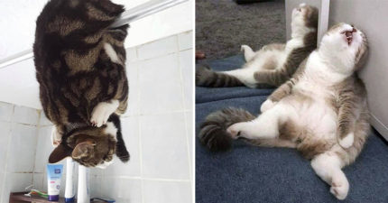 累到就像「剛下班的你」的爆笑癱軟貓咪 走路真的太累…直接「掛在路邊」睡一波XD