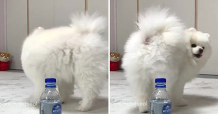 最可愛踢瓶蓋挑戰❤小博美憨笑「踩短腿轉圈」 下秒動作萌翻萬人:奴才~上肉乾!
