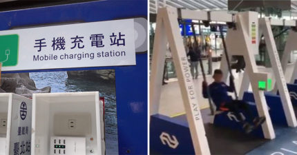 車站出現「能減肥的」手機充電站 低頭族坐一排「拼命盪救手機」畫面超爆笑!