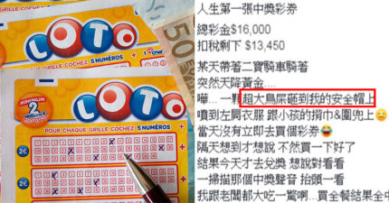 騎車被「鳥黃金砸頭」覺得不對 秒買彩券「全餐全中」老闆也傻眼!