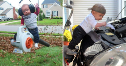 12张「宝宝上班不小心被拍到」的工作实况 拿着「2倍大的斧头劈柴」…画面超萌❤